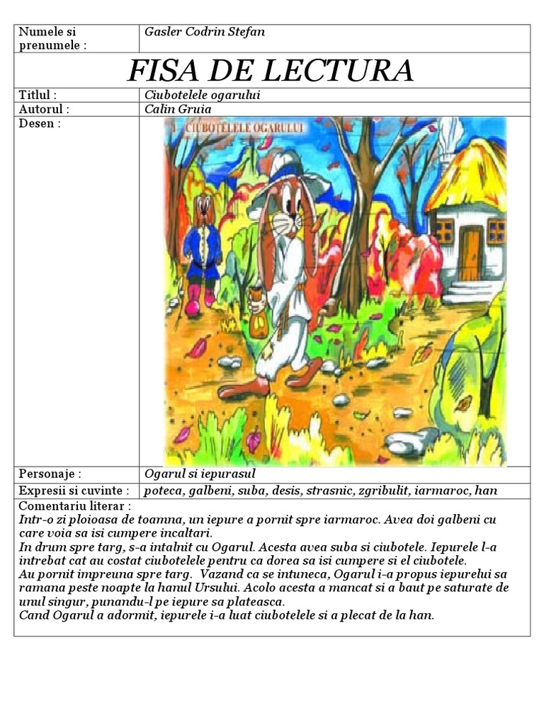 Ciubotelele Ogarului De Calin Gruia Pdf Document Source from : https://vdocuments.mx/ciubotelele-ogarului-de-calin-gruia.html Ca activitatea voastră să fie cu adevărat eficientă și acum, dar și mai târziu, noi vă recomandăm respectarea următorilor pași: Let us know what's wrong with this preview of ciuboţelele ogarului by călin gruia. Iepurele, vazind ciomagul, incepu sa tremure de frica. — cit ai dat pe incaltari? Ciubo elele ogarului de unde avea iepurele doi galbeni, nici eu nu tiu!