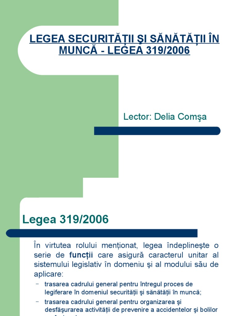 108/1999 pentru înfiinţarea şi organizarea inspecţiei muncii. Baciu dumitru la noutăți prevăzute de legea nr. Legea 319/2006 si normele de aplicare art. Parlamentul româniei adoptă prezenta lege. A securită ii şi sănătă ii în munca.