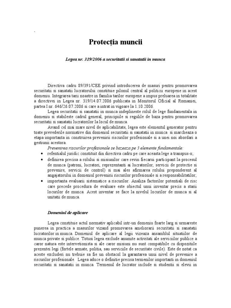 Legea 319/2006. Oferim asist.enta tehnica in domeniul securitatii si sanatatii in munca in sesnul dispozitiilor din legea 319/2006, art. (2) din legea securității și sănătății în muncă nr. Contacteze serviciile specializate în caz. Baciu dumitru la noutăți prevăzute de legea nr. Legea 307 din 12 iulie 2006 privind apărarea împotriva incendiilor.