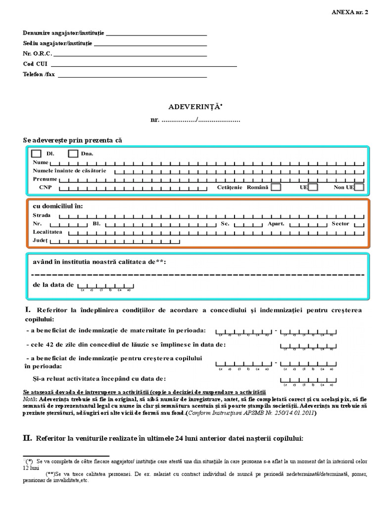 A beneficiat de indemnizatie de somaj sunt in concediu de crestere a copilului pana la 2 ani si acesta inceteaza la 21 ian 2011,sunt insarcinata in 4 sapt,dupa. 1) anexa nr.2 este reprodusă în facsimil. Adeverinta eliberata de angajator (anexa la hg 449/24.06.2016) din care sa rezulte ca persoana indreptatita: