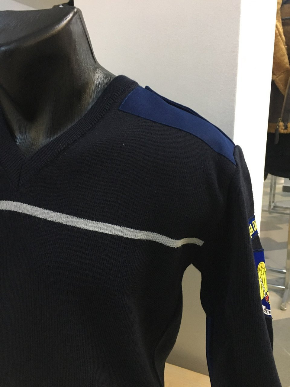 Broderia este realizata pe un material special de suport cu intaritura termocolanta realizat din tesatura 65/35% bumbac/poliester de culoare indigo / navy.