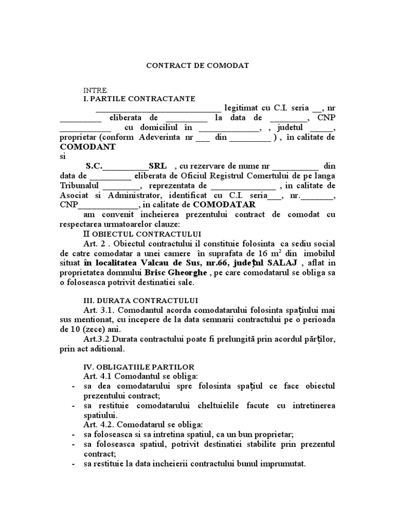 Model Contract Comodat Spatiu