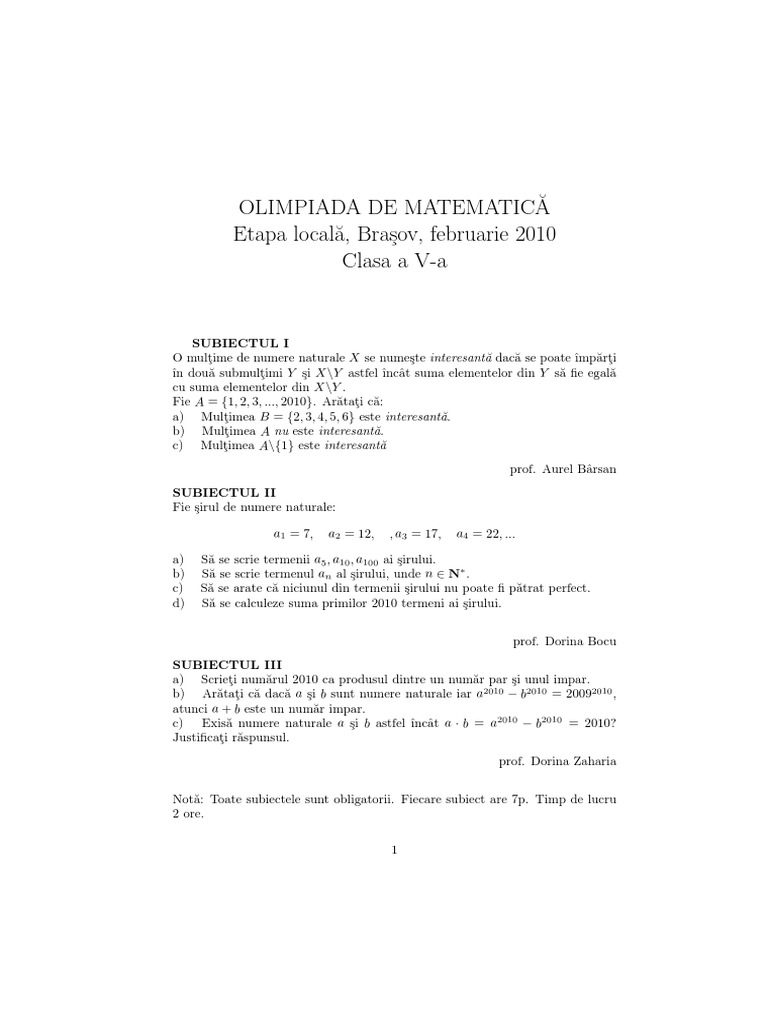 Subiecte Olimpiada Matematica Clasa 5